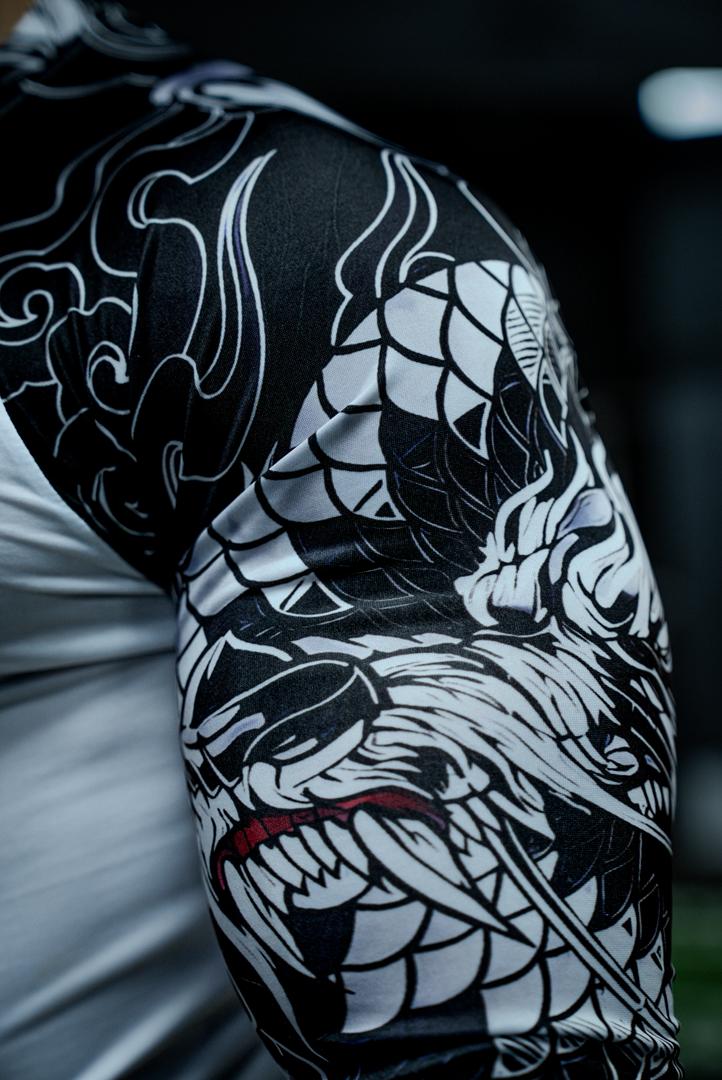 Unleash your inner strength with our Ryuko 龍虎 Compression Shirt, a fusion of performance and Japanese-inspired artistry. Designed for athletes and streetwear enthusiasts alike, this shirt features bold dragon artwork running along the sleeves — a symbol of power, balance, and resilience drawn from traditional Japanese culture.